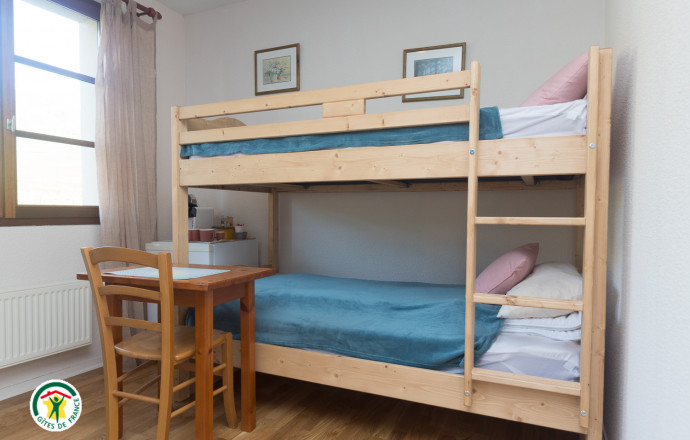 Grande chambre comporte 2 pièces 1 lit double et 2 lits superposés pour accueillir couple avec enfants